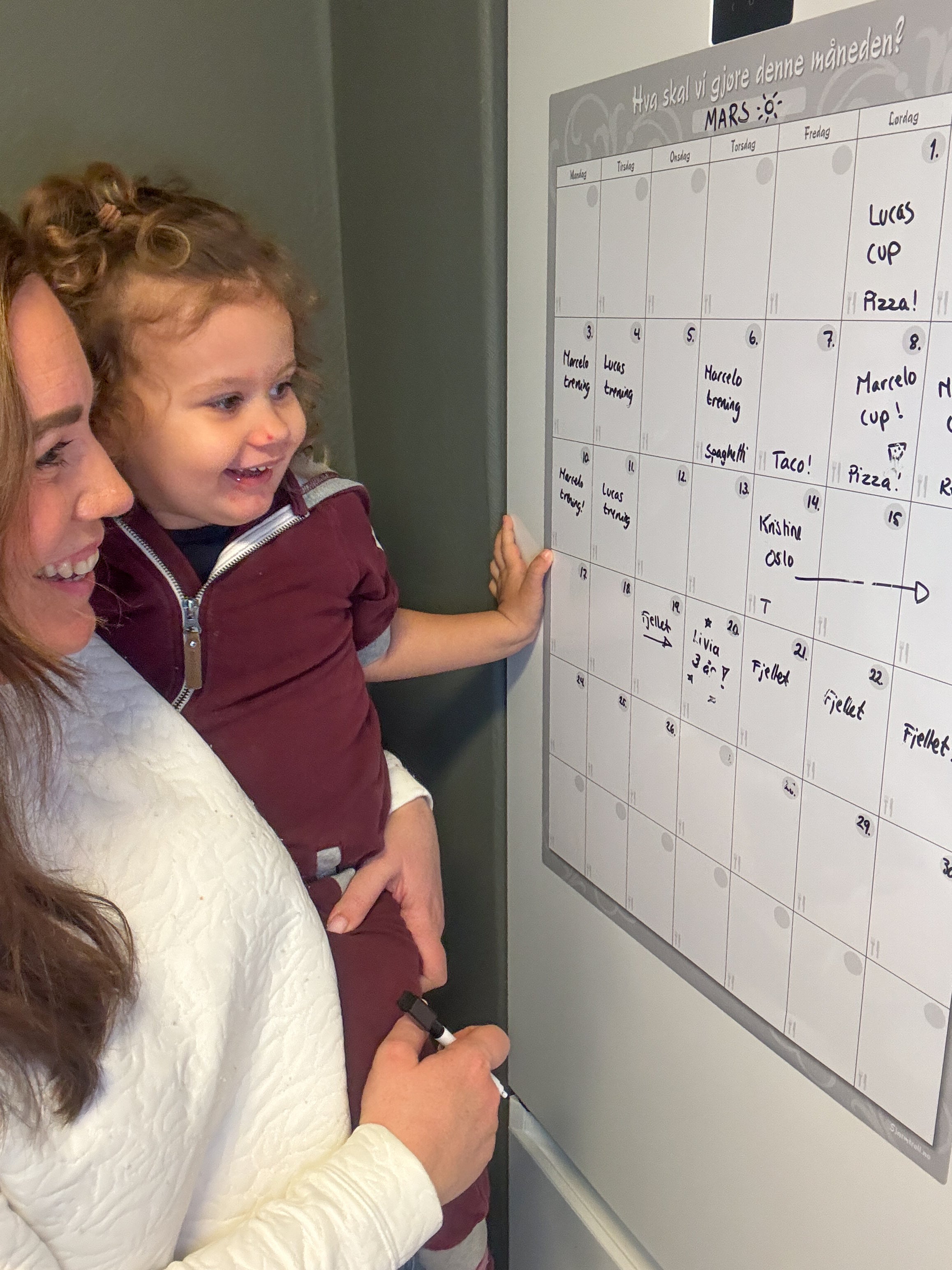 Vi er veldig glad for denne kalenderen. Nå kan hele familen se hva som skal skje til uken og ikke minst vite hva vi skal ha til middag 😊