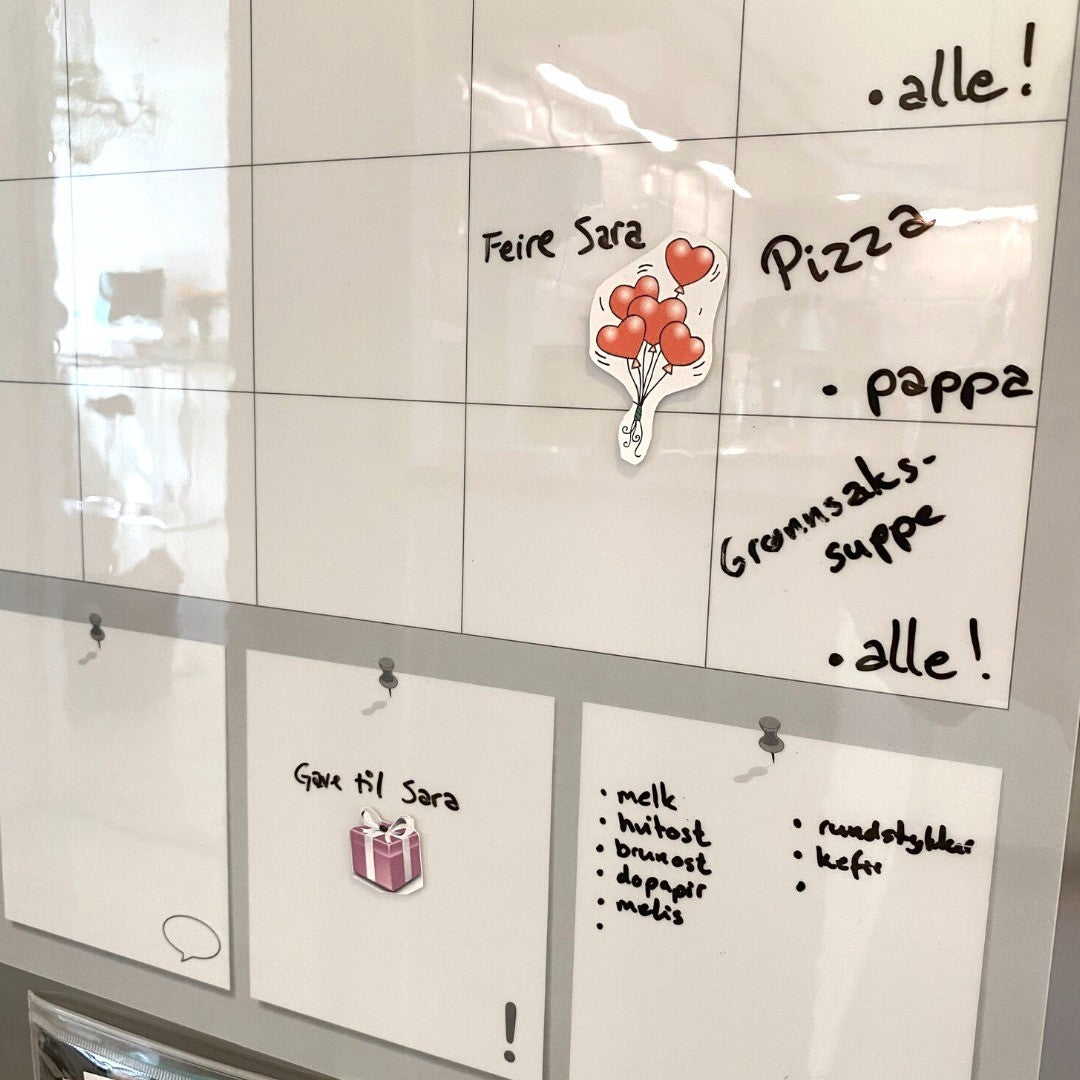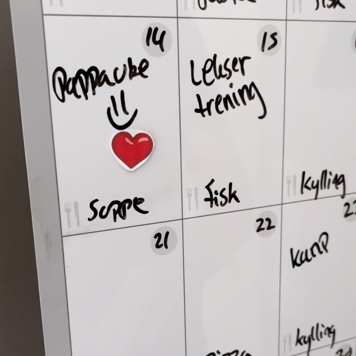 Dvs: Hvis du har brukt dobbeltsidig tape for å henge opp kalenderen din, enten på integrert kjøleskap eller vegg, må du bruke tack-it el. for å feste symbolene.