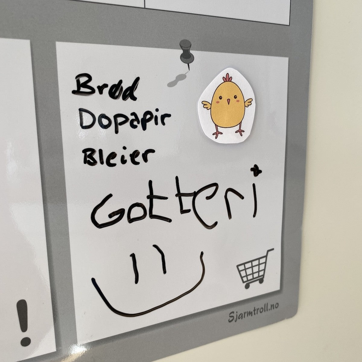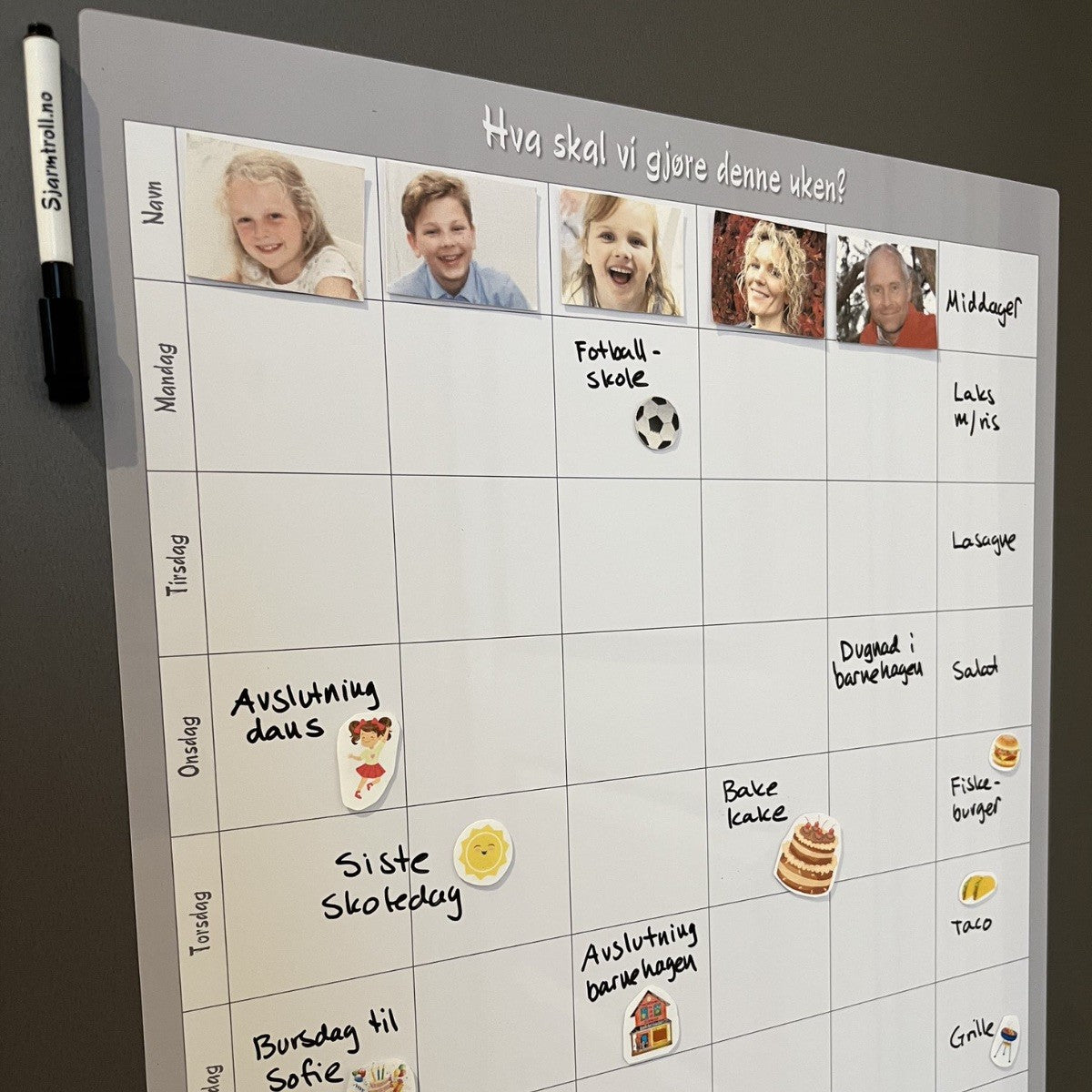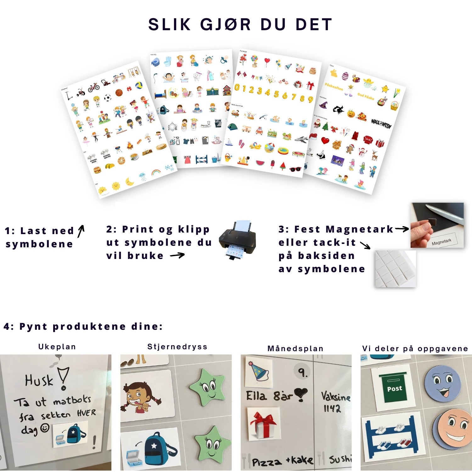 Har du Månedsplanen eller Ukeplanen er det et must at den henger magnetisk på kjøleskapet for at symbolene skal feste seg med magnetark.