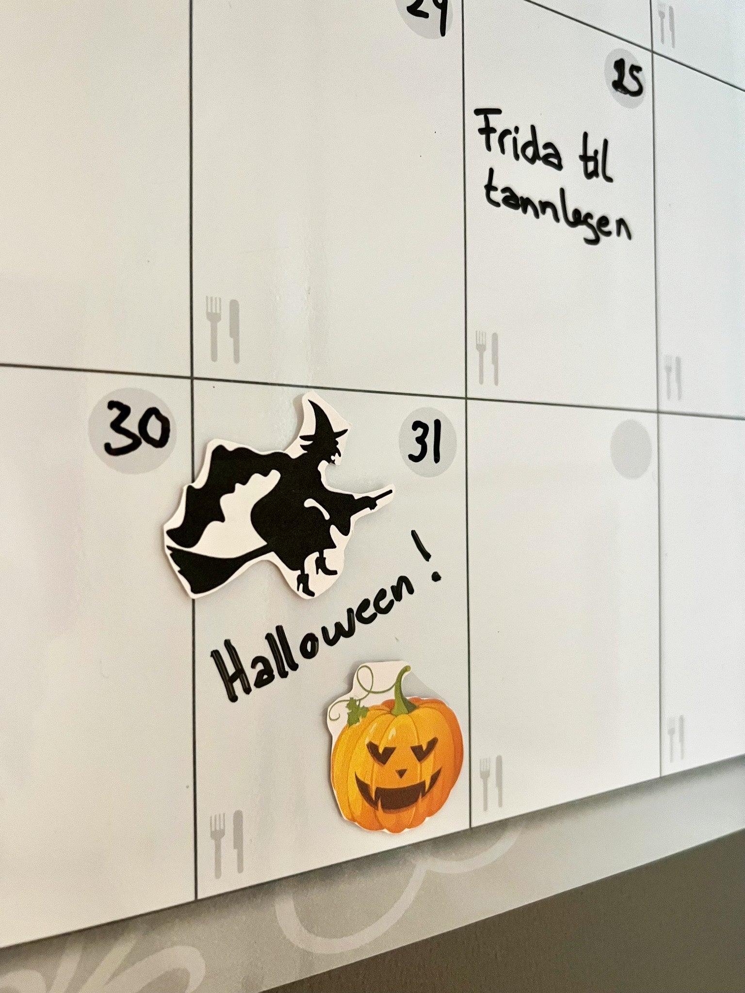 Sitter godt på kjøleskapet, er lett å skrive på og viske vekk.