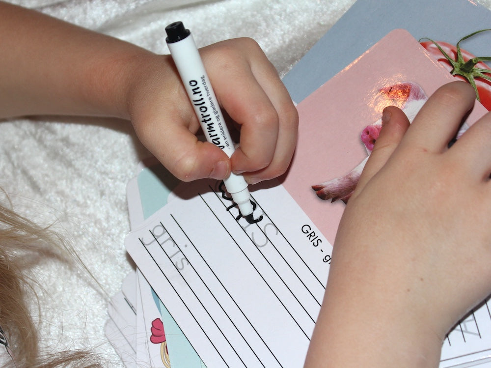 Bruk whiteboardtusjer, da kan det skrives og tørkes bort om og om igjen 😃 Vi har 3-pakninger i en søt liten zip-pose til kr 99,-