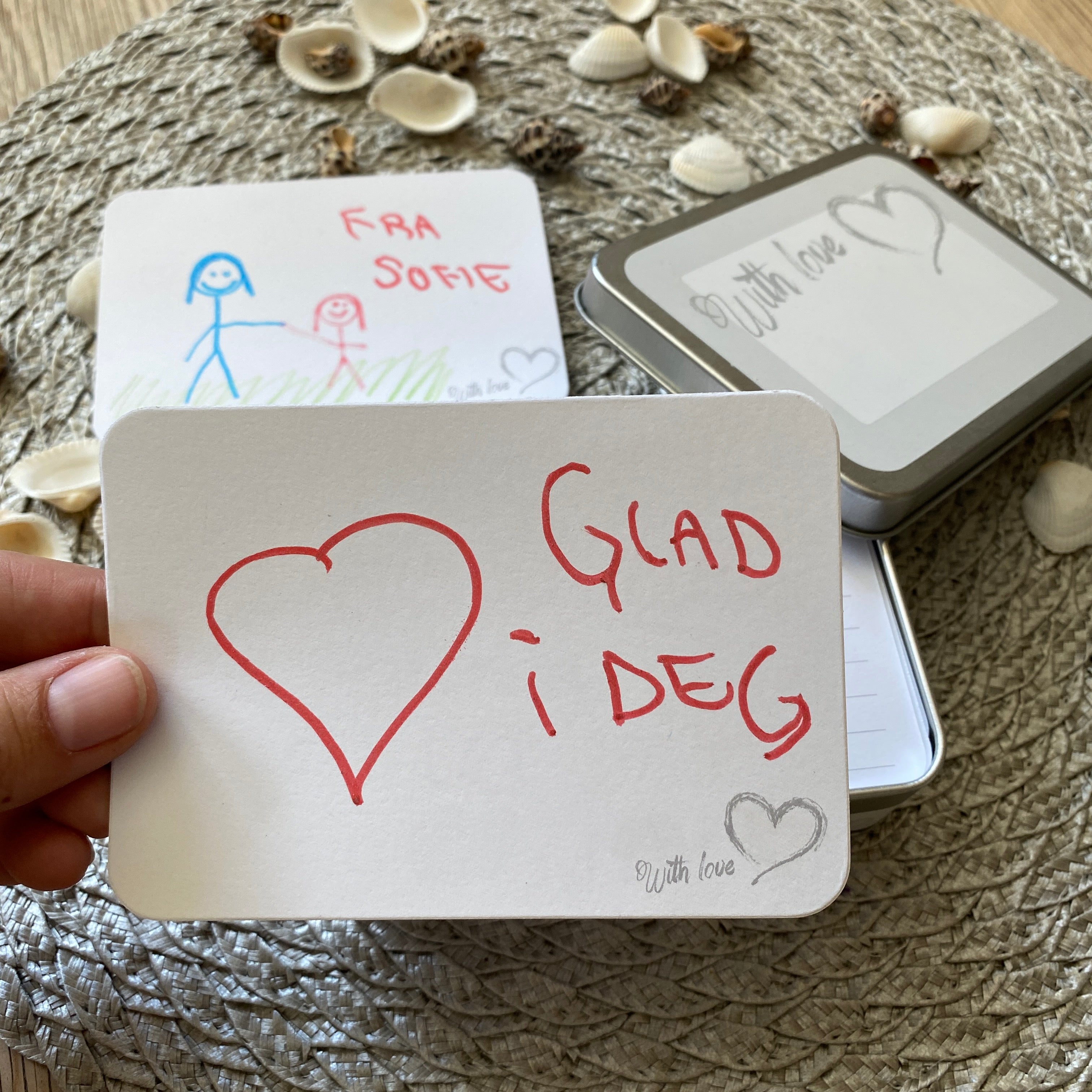 Med «Jeg er glad i deg fordi»-kortene kan du sette ord på det som gjør noen helt spesiell for deg.