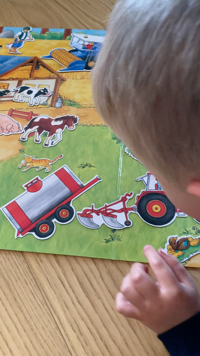 Livet på bondegården er en trygg og morsom aktivitet som holder barna engasjert på bilturen. Med de magnetiske brikkene får de leke kreativt – helt uten skjerm.