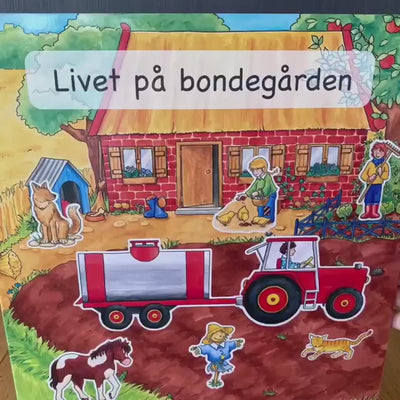 Mange barn synes det er superspennende med alt som finnes på en bondegård 🚜 Vi har derfor utviklet en egen bondegårdsbok der barna kan leke med både dyr, maskiner og mennesker.