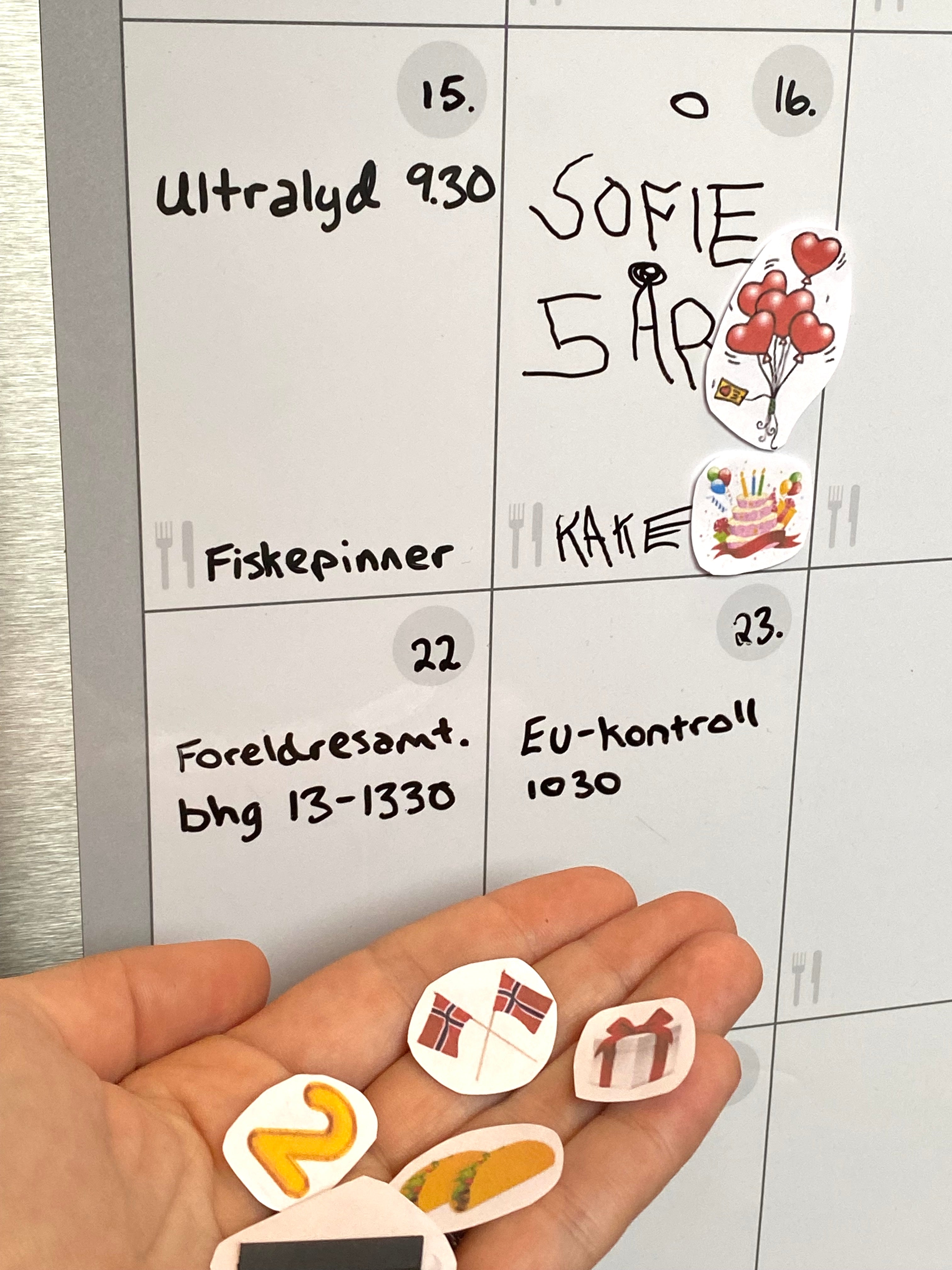 Vi er veldig glad for denne kalenderen. Nå kan hele familen se hva som skal skje til uken og ikke minst vite hva vi skal ha til middag 😊