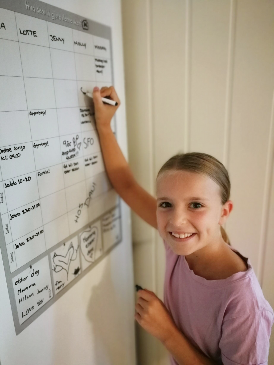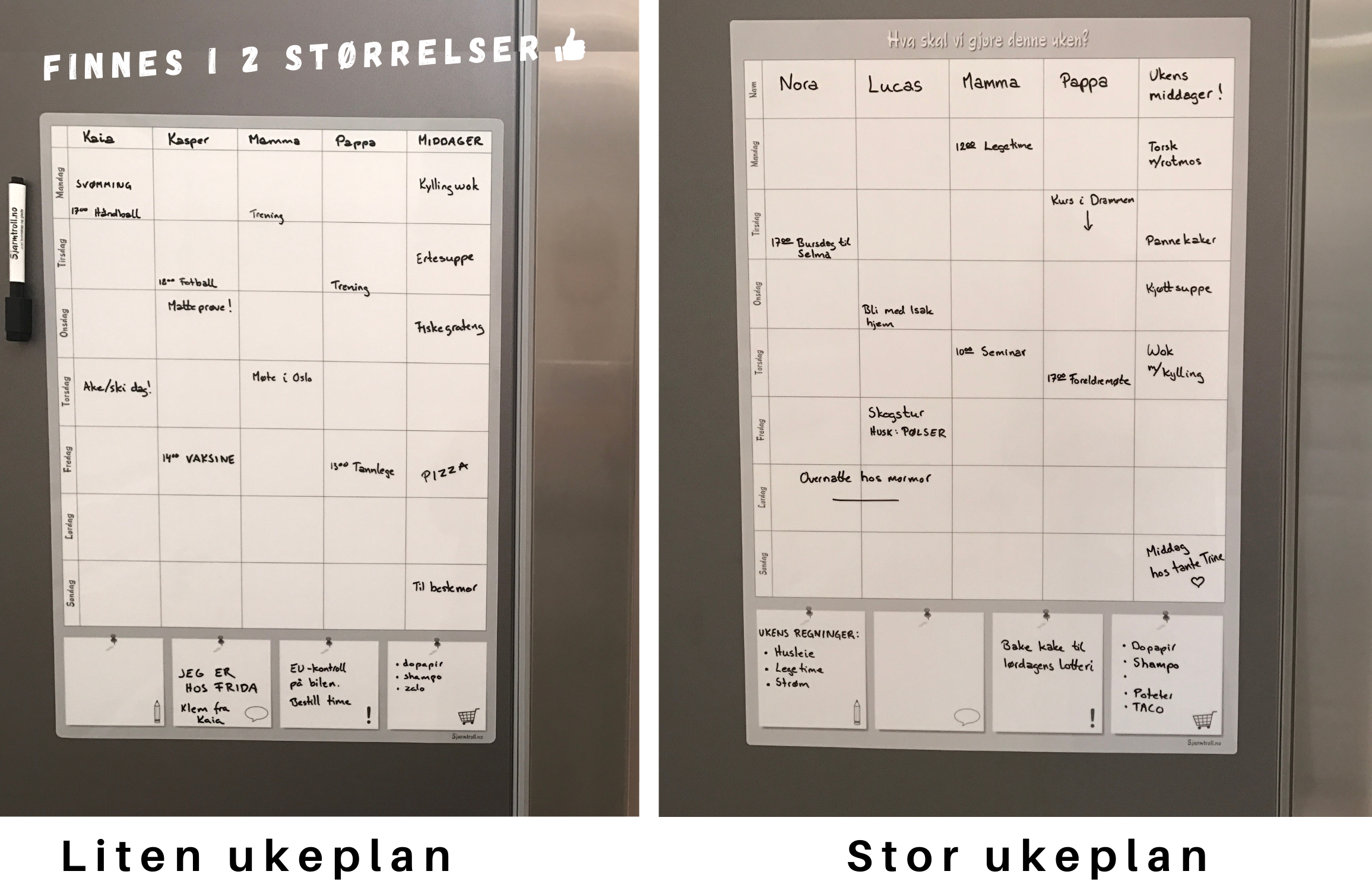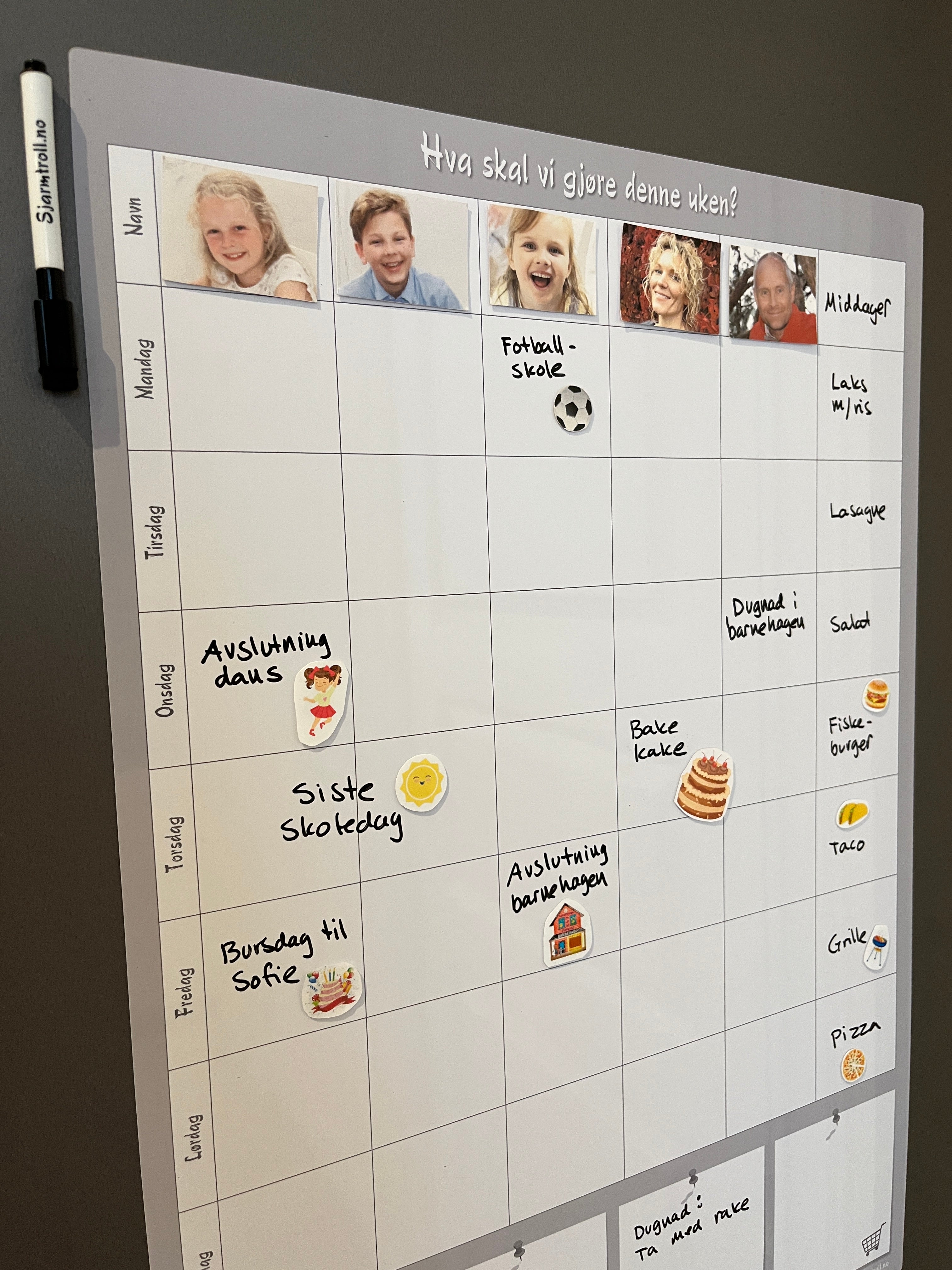 Vi er veldig glad for denne kalenderen. Nå kan hele familen se hva som skal skje til uken og ikke minst vite hva vi skal ha til middag 😊