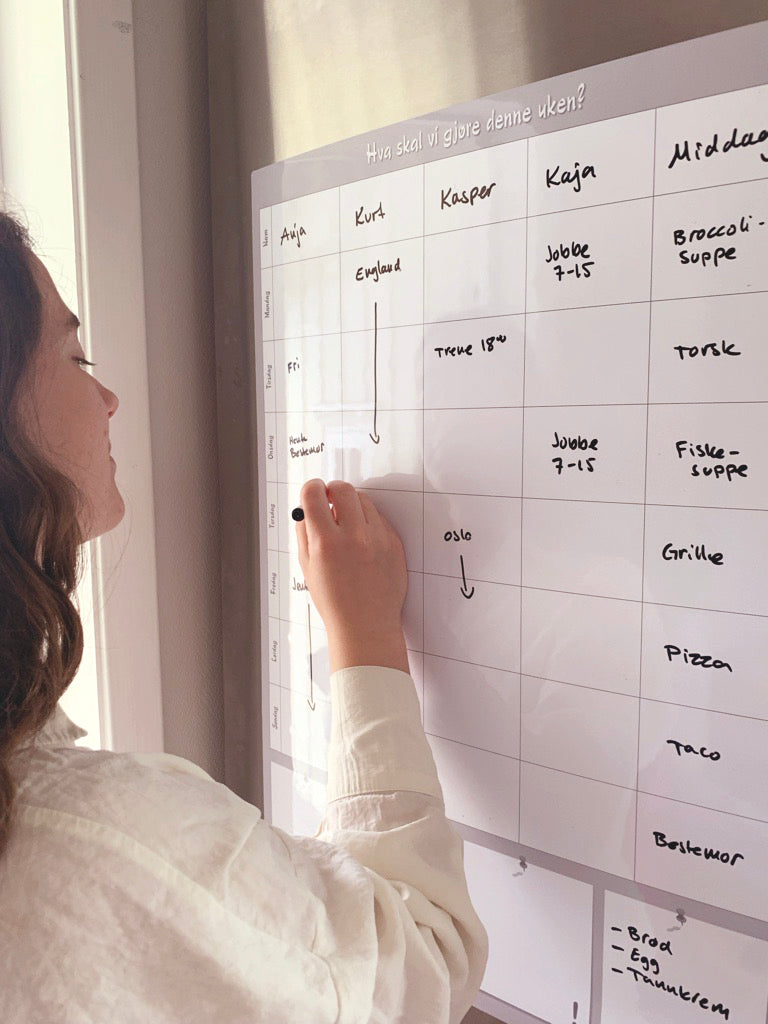Ukeplanen hjelper dere i gang med gode rutiner! Heng den magnetisk på kjøleskapet, på veggen eller på et integrert kjøleskap. Kundene elsker den!
