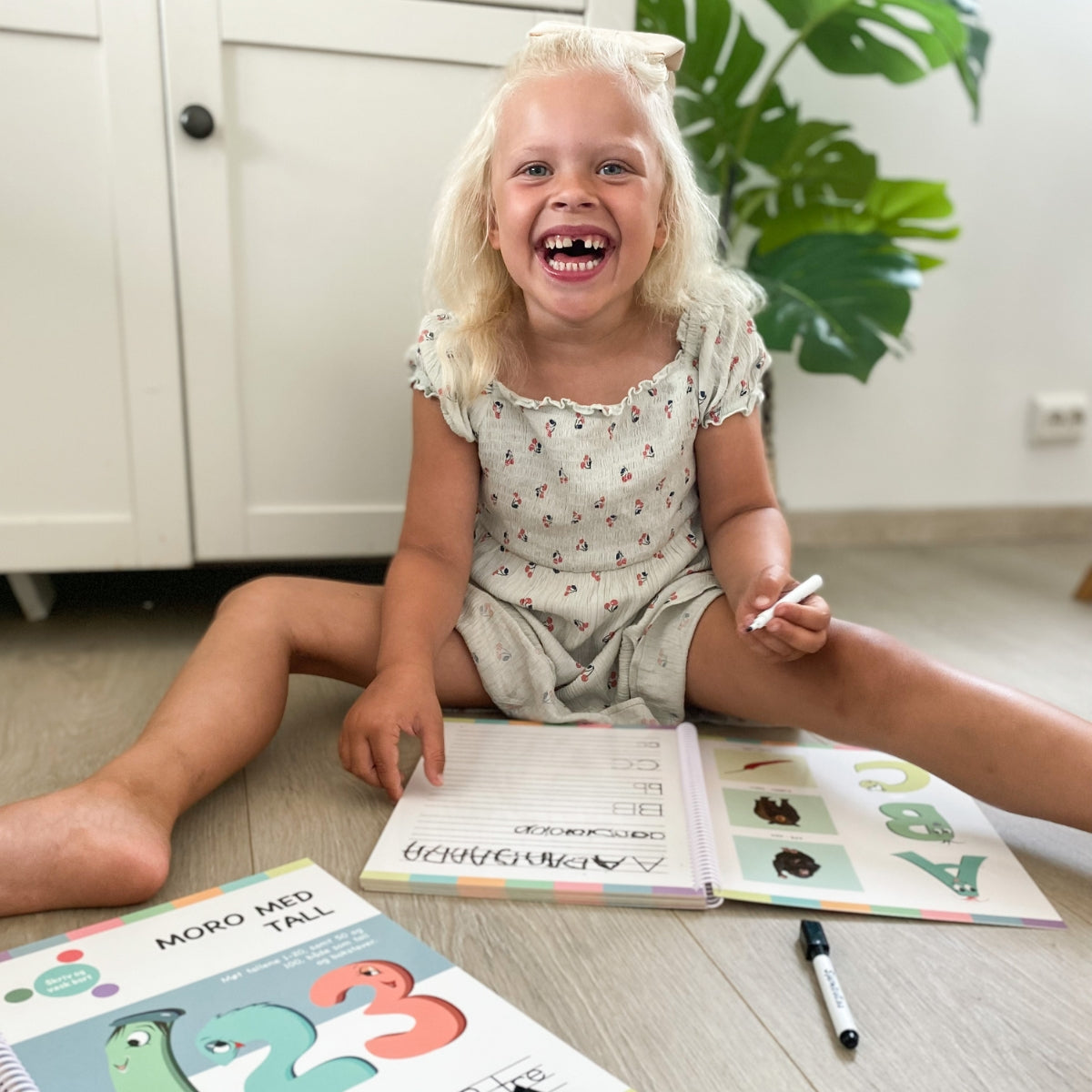 Emma Sofie er super happy med disse bøkene! De er perfekte til læring og gøy. Som dere ser er snuppa fornøyd.
